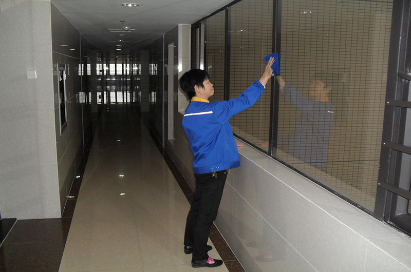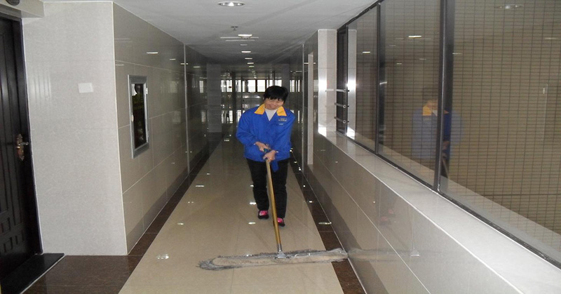 保潔員在樓道現(xiàn)場保潔